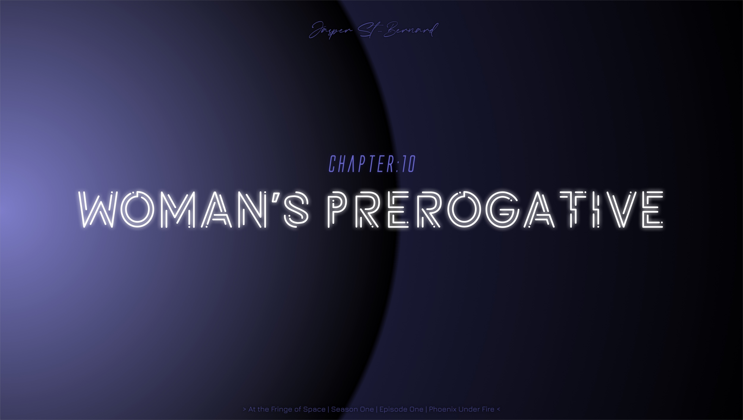 The men nodded silently and took up positions with cover from the entrances. Belisa remained central to the space. She bowed her head and listened. She heard her own shallow breathing. She heard the rasping sighs of her companions as they settled. She listened to the distant humming of the ship as the idling generators resonated throughout the quiet structure. She tilted her head as her augmented hearing picked up some movement from the bridge.